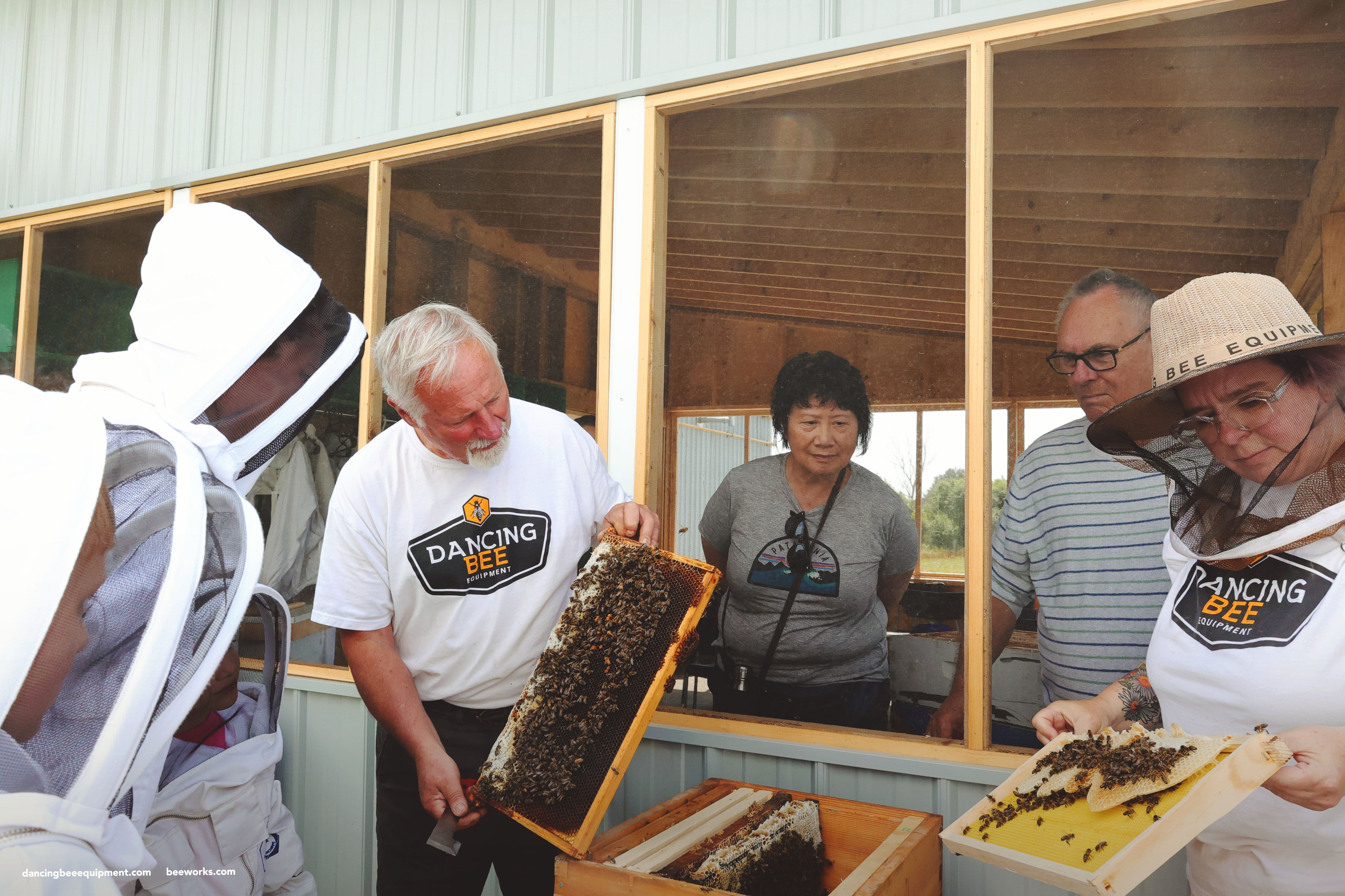 - See an open hive and hold a frame